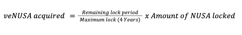 As the Governance token, veNUSA will represent your voting influence and reward portion. The amount of veNUSA you can own is influenced by the amount of NUSA locked and the duration of lock. veNUSA is uniquely made to decrease overtime towards the end of lock duration, hence, you will need to understand throughly on how veToken works.